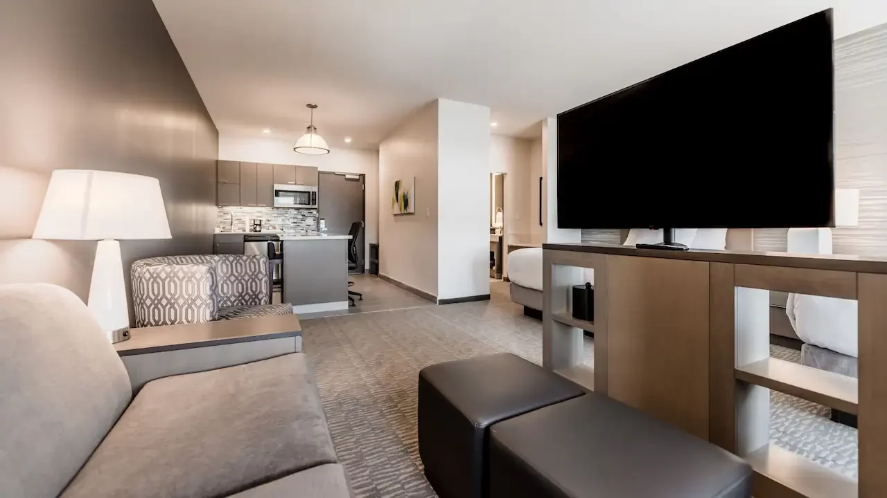 The accommodations at Hyatt House are thoughtfully designed to ensure a pleasant stay. Guests can choose from a variety of room types, including spacious suites that feature separate living areas, fully equipped kitchens, and modern amenities. Each room is outfitted with plush bedding, flat-screen TVs, and complimentary Wi-Fi, providing a home-like atmosphere for guests. The kitchen facilities make it easy for families or longer-stay guests to prepare their own meals, adding an extra layer of convenience to their experience.